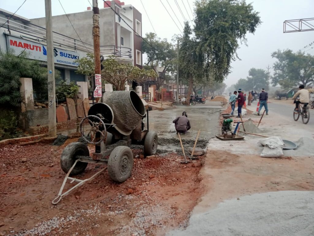 -ठेकेदार को लाभ देने के लिए कागारौल रोड़ पर इंटरलॉकिंग टाईल्स की जगह किया जा रहा सीसी निर्माण कार्य