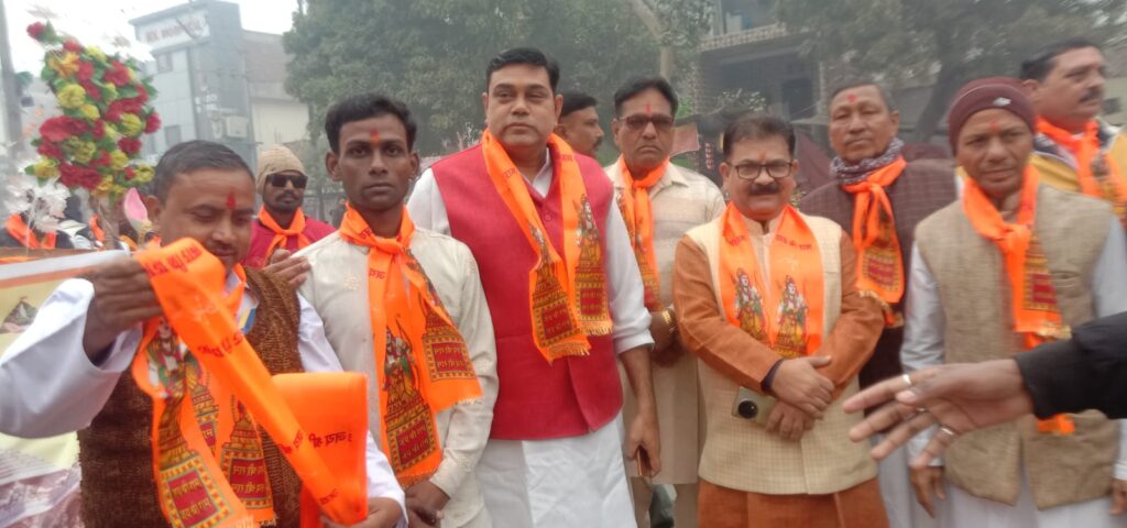 आगरा। अयोध्या में आगामी 22 जनवरी को भगवान श्री राम की मूर्ति की प्राण प्रतिष्ठा के लिए घर घर निमंत्रण पहुंचाने के लिए शनिवार को कस्बा नरीपुरा में भव्य कलश यात्रा और भगवा रैली का आयोजन किया गया। यह कलश यात्रा नरीपुरा से खेरिया मोड़, अजीत नगर होते हुए अयोध्या कुंज अर्जुन नगर पहुंच कर समाप्त हुई। इस दौरान मुख्य अतिथि क्षेत्रीय विधायक जीएस धर्मेश एवं पार्षद अजय गोस्वामी, मंडल उपाध्यक्ष आनंद कुमार एवं अन्य पार्टी के कार्यकर्ता मौजूद रहे।