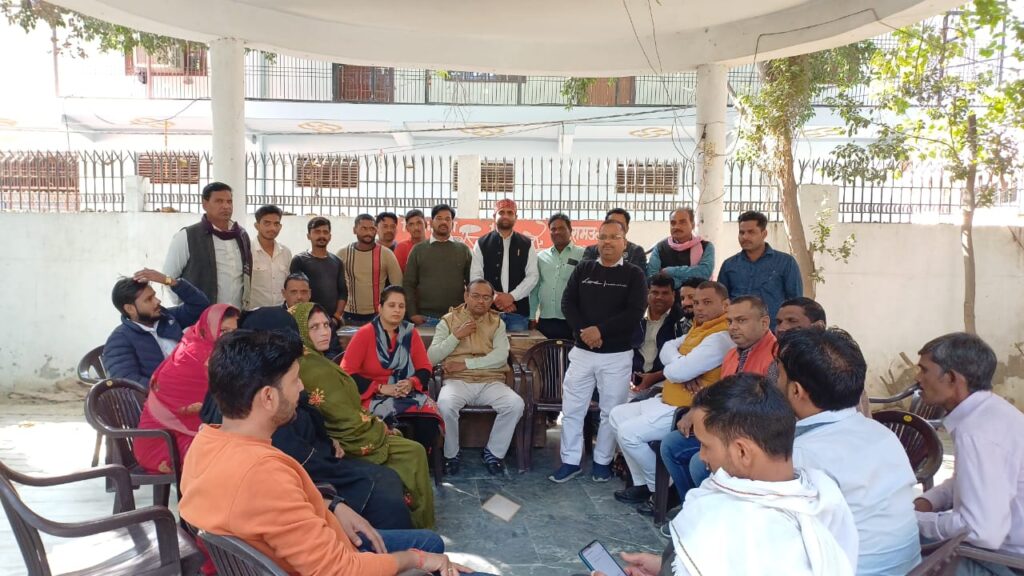 समाजवादी पार्टी की मासिक बैठक का आयोजन पूर्व विधायक अरविंद सिंह यादव के आवास पर संपन्न हुई। बैठक की अध्ययता की विधानसभा अध्यक्ष उमेश पाल ने कहा कार्यकर्ताओं को एकजुट होकर पार्टी की नीतियों का प्रचार प्रसार करने के लिए निर्देशित किया किसानों को सरकार खाद तक मुहैया नहीं करा पा रही है ऐसी निकम्मी सरकार को उखाड़ फेंकने के लिए जनता बिल्कुल तैयार बैठी है बैठक संचालन किया आदिल परवेज इस मौके पर बजरंग सिंह चौहान ह्रदयनारायण दुबे अंकुर सिंह यादव मीडिया प्रभारी अनुराग वाजपेयी धीरज कठेरिया डॉ धमेंद्र यादव रोविन जाटव विपिन जाटव शालिनी गुप्ता अंमिका अग्रवाल शहनाज अतुल कटेरिया अमन खान तस्लीम वारसी मोनू यादव ह्रदय नारायण दुबे साकेत जाटब लाखन सिंह जितेंद्र सादव मैजूद रहे
