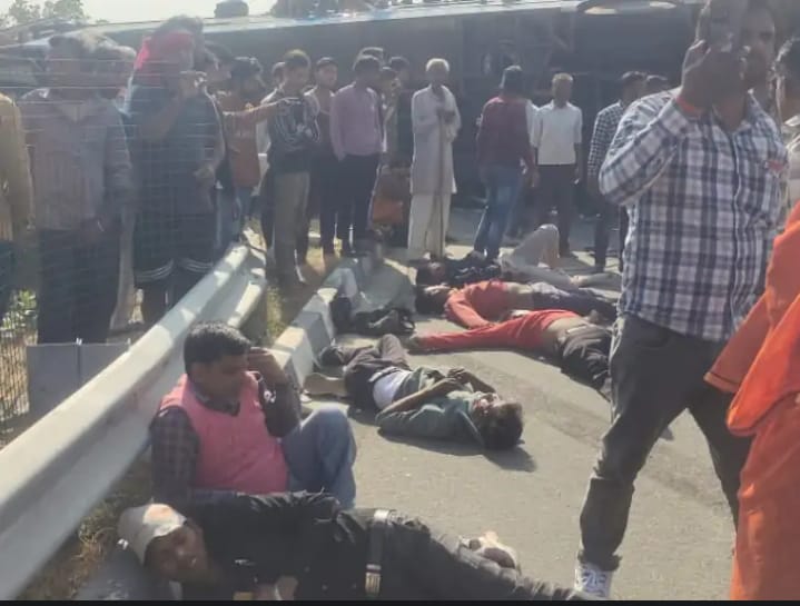 ट्रक से टकराकर डबल डेकर बस पलटी,कई नीचे दबे;