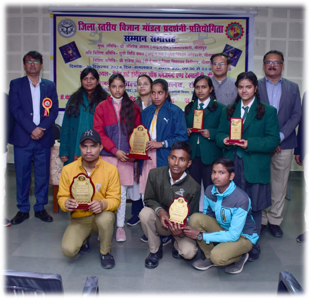 निर्णायक मंडल में सम्मिलित रहे डॉ राजीव द्विवेदी, डॉ विपिन कुमार तथा राजकीय इंटर कॉलेज के प्रधानाचार्य वीरेश सिंह ने कृषक इंटर कॉलेज की प्रियंका राठौर के महिला सुरक्षा उपकरण को प्रथम स्थान आरबीएसबीएस कमलापुर के उत्कर्ष को जैव विविधता एवं संरक्षण को द्वितीय व डीजे कॉलेज खैराबाद के ललित और प्रवेश भार्गव द्वारा बनाई गई गाना काटने की आधुनिक मशीन को तृतीय स्थान दिया। जबकि डीपी वर्मा मेमोरियल की आयुषी, शिखा, प्रतीक्षा, अंशिका, पल्लवी द्वारा ऊर्जा की मित व्ययिता के साथ स्मार्ट सिटी वाले मॉडल को तथा दिल्ली पब्लिक स्कूल की चर्चिका एवं आस्था को सांत्वना पुरस्कार प्राप्त हुआ।