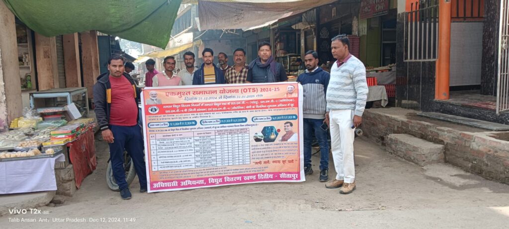मिश्रित सीतापुर / विद्युत उपकेन्द्र मिश्रित में तैनात उपखंड अधिकारी शैलेन्द्र कुमार पांडेय व्दारा बकाया विद्युत बिल की अधिक से अधिक राजस्व वसूली जमां कराने हेतु एक मुस्त समांधान योजना के बारे में क्षेत्र के लोगों को बराबर जागरूक किया जा रहा है । आज विद्युत कर्मचारियों व्दारा ग्राम पंचायत आंट , बरेठी , कोल्हुआ में फ्लैग मार्च निकालकर सरकार व्दारा संचालित एक मुस्त समांधान योजना के बारे में लोगों को जागरूक किया । फ्लैग मार्च में शामिल कर्मचारियों ने आम जनता को जानकारी देते हुए बताया है । कि दिनांक 15 दिसंबर से 31 दिसंबर 2024 बकाया विद्युत बिल में छूट देने हेतु सरकार व्दारा एक मुस्त समांधान योजना संचालित की जा रही है । जो विद्युत बकायादारों के लिए एक सुनहरा अवसर है । बकायादार इस कैम्प में अपना विद्युत बिल जमा करके भारी छूट लाभ पा सकते है । इस लिए सभी बकायादार अपना विद्युत बिल कैम्प में जमां करके