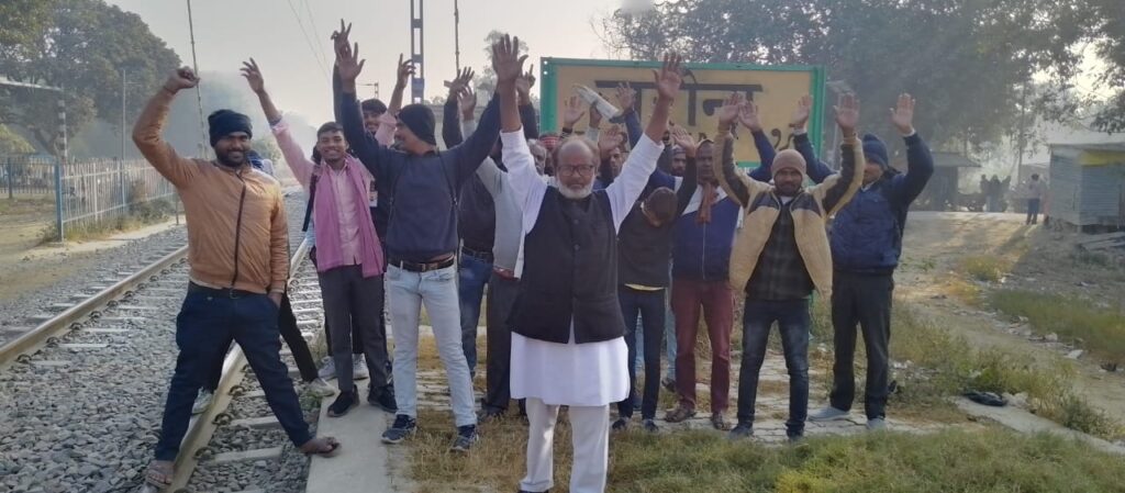 अतुल सुभाष सुसाइड हत्या पर जरौना रेलवे हाल्ट स्टेशन पर हुआ प्रदर्शन रेल-रोको आंदोलन की घोषणा-