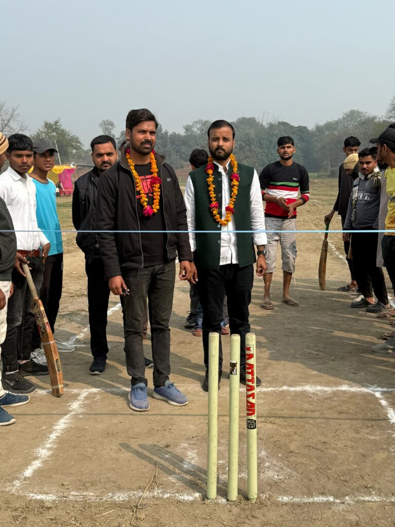 क्रिकेट टूर्नामेंट का युवा समाजसेवियों ने फीता काटकर किया शुभारंभ।
