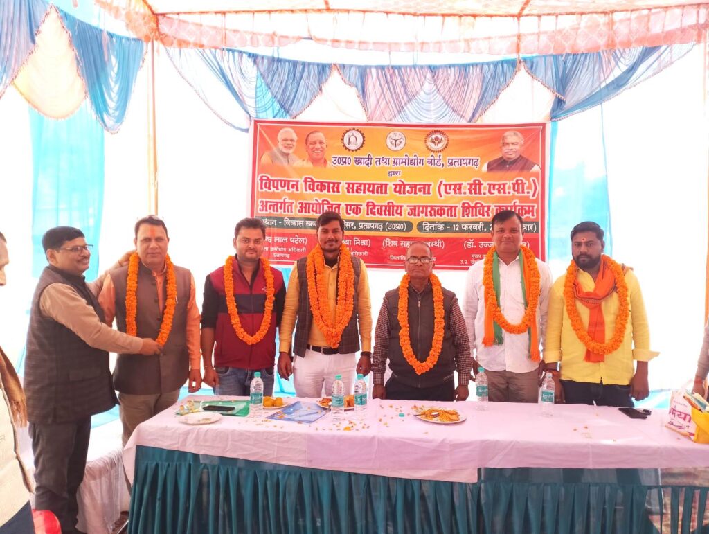 उ0प्र0 खादी एवं ग्रामोद्योग बोर्ड की विपणन विकास सहायता योजना के अन्तर्गत विभाग में संचालित मुख्यमंत्री ग्रामोद्योग रोजगार योजना, मुख्यमंत्री माटीकला रोजगार योजना, मुख्यमंत्री युवा उद्यमी विकास अभियान एवं प्रधानमंत्री रोजगार सृजन कार्यक्रम के प्रचार प्रसार हेतु विकास खण्ड सदर परिसर में नगर अध्यक्ष भाजपा आलोक गर्ग की अध्यक्षता में एक दिवसीय जागरूकता शिविर का आयोजन किया गया। कार्यक्रम में मुख्य अतिथि ब्लाक प्रमुख प्रतिनिधि रवि प्रताप उर्फ गोल्डी सिंह रहे। कार्यक्रम का संचालन रहेन्द्र कुमार शुक्ला सहायक विकास अधिकारी द्वारा किया गया। कार्यक्रम में मुख्य रूप से धर्मेन्द्र चौरसिया नगर महामंत्री भाजपा, मनीष सिंह युवा नेता भाजपा, रणजीत सिंह ग्राम प्रधान, माटीकला के प्रशिक्षक सुधीर प्रजापति, उद्यमीगण गोपाल चन्द्रा, जीआर विश्वकर्मा, बलवन्त पटेल, पंकज विश्वकर्मा तथा कार्यक्रम प्रभारी राम अजीत पटेल के साथ कार्यालय के श्याम बहादुर यादव, रमेश द्विवेदी एवं सिद्धान्त मौर्या आदि लोग उपस्थित रहे। यह जानकारी जिला ग्रामोद्योग अधिकारी नन्द लाल पटेल द्वारा दी गयी है।