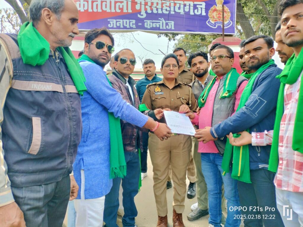 मंगलवार को कोतवाली गुरसहायगंज प्रभारी निरीक्षक को जिलाध्यक्ष संदीप पाठक ने दर्जनों कार्यकर्ताओं के साथ पहुंच कोतवाली प्रभारी के माध्यम से मुख्यमंत्री को भेजा ज्ञापन। ज्ञापन में बताया कि विगत दिनों पूर्व दिनांक 11/02/2025 को कासगंज की मोहनपुरा मटर मंडी में कल्लू उर्फ बृजराज पुत्र बाबूराम निवासी कांतौर,कासगंज के साथ मंडी में मौजूद सुरक्षा पुलिसकर्मियों द्वारा बर्बरता पूर्वक अत्याचार (मारने, पीटने एवं जमीन पर घसीटने) का कुक्रत कर मानवाधिकार का हनन किया गया तथा बनावटी घटना व मनगढ़ंत कहानी प्रत्यारोपित कर उक्त बुजुर्ग किसान पर गंभीर धाराओं में मुकदमा पंजीकृत कर कानूनी आघात भी पहुंचाया गया है। इसके विरोध में आगामी 20/02/2025 को प्रदेश अध्यक्ष आशीष पांडे के आदेशानुसार प्रदेश भर में उक्त प्रकरण से संबंधित पुलिसकर्मियों के निलंबन व उन पर कार्यवाही की मांग को लेकर आंदोलन किया जाएगा। इसी के साथ ज्ञापन के माध्यम से 20/02/2025 समय दोपहर 12:00 बजे तक ज्ञापन की मांगे पूरी न होने पर कन्नौज में कार्यकर्ताओं द्वारा “कासगंज पुलिस का पुतला दहन” किया जायेगा।