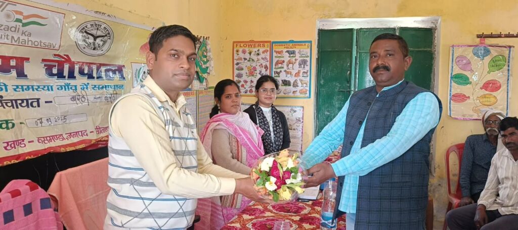 कमलापुर सीतापुर ग्रामीणों की समस्याओं के समाधान के लिए ग्राम पंचायत स्तर पर चौपाल का आयोजन किया गया। मुख्य विकास अधिकारी के निर्देश पर विकासखंड कसमडां में यह कार्यक्रम हुआ जिला विकास अधिकारी हरिचंद प्रजापति कर की देखरेख में चौपाल का आयोजन किया गया।खंड विकास अधिकारी राकेश श्रीवास्तव माननीय मुख्यमंत्री जी की महत्वकांक्षी योजना है, इस योजना में कोई लापरवाही बर्दाश्त नहीं की जाएगी। वित्त सचिव ने ग्रामीणों से राशन, बिजली, चकरोड, आयुष्मान कार्ड, किसान सम्मान निधि आवास पानी आदि योजनाओं की जानकारी ली।उन्होंने कहा कि आप लोग अपना-अपना मोबाइल नंबर आधार कार्ड में जरूर दर्ज कराएं, जिससे आपको किसान सम्मान निधि का लाभ मिलता रहे।बरेठी ग्राम पंचायत में आयोजित चौपाल में ब्लॉक कर्मचारियों के साथ कई विभागों के प्रतिनिधि मौजूद रहे। पंचायत वंदना भारती ने बताया कि चौपाल में आई सभी चार शिकायतें राशन कार्ड से संबंधित थीं। शिकायतकर्ताओं को आवेदन प्रक्रिया की पूरी जानकारी दी गई।ग्रामीणों ने सरकार की इस पहल की सराहना की। उन्होंने कहा कि इससे अधिकारी गांव आकर उनकी समस्याएं सुन रहे हैं। एडीओ समाज कल्याण जह्नवी यादव ने कहा कि ग्रामीणों की समस्याओं का समाधान उनकी प्राथमिकता है। उन्होंने बताया कि चौपाल के माध्यम से मौके पर ही समस्याओं का निदान किया जाता है। साथ ही सरकार की सभी लाभकारी योजनाओं को जनता तक पहुंचाना उनका लक्ष्य है।इस मौके पर जेआरएस शिवकुमार पटेल प्रधान शांति देवी अनुज कुमार शुक्ल टीए के के तिवारी शिक्षक गोपी कृष्ण मिश्र सुप्रिया मिश्र सपना श्रीवास्तव महेंद्र प्रताप सिंह हरिशंकर राजेश रावत मुन्नी लाल चौधरी जितेन्द्र कश्यप संतोष भार्गव टीका राम चौधरी सुरेन्द दिनकर आदि ग्रामीण मौजूद रहे