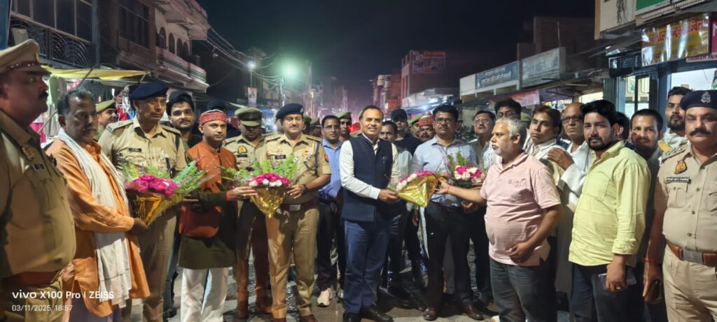 नगर पालिका अध्यक्ष मनोज दुबे और व्यापार मंडल के अध्यक्ष लालू गुप्ता,मुन्ना गुप्ता,भानु चौहान आदि भी जिलाधिकारी और पुलिस अधीक्षक के साथ साथ पैदल चलते हुए नगर वासियों में विश्वास और प्रेम की अलख जगाते दिखे।
