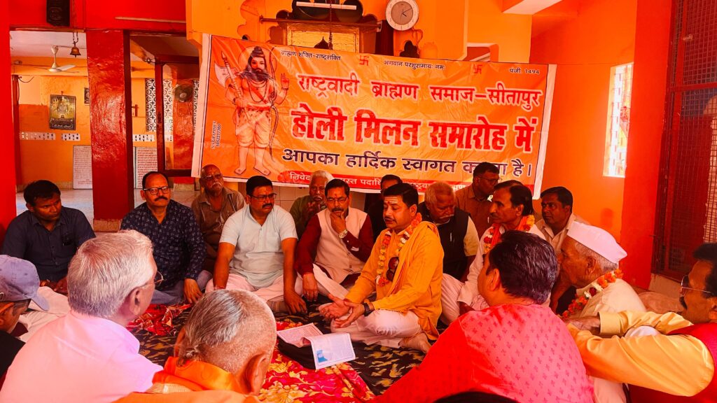 सीतापुर/ राष्ट्रवादी ब्राह्मण समाज सीतापुर के तत्वाधान में गत वर्षों की भाँति इस वर्ष भी होली मिलन का कार्यक्रम हर्षोल्लास के साथ मानस मंदिर निकट महावीर पार्क मनाया गया सर्वप्रथम कार्यक्रम का शुभारंभ भगवान परशुराम की पूजा अर्चना के साथ किया गया उसके साथ पंडित श्री पति मिश्रा द्वारा संवत सुनाया गया,