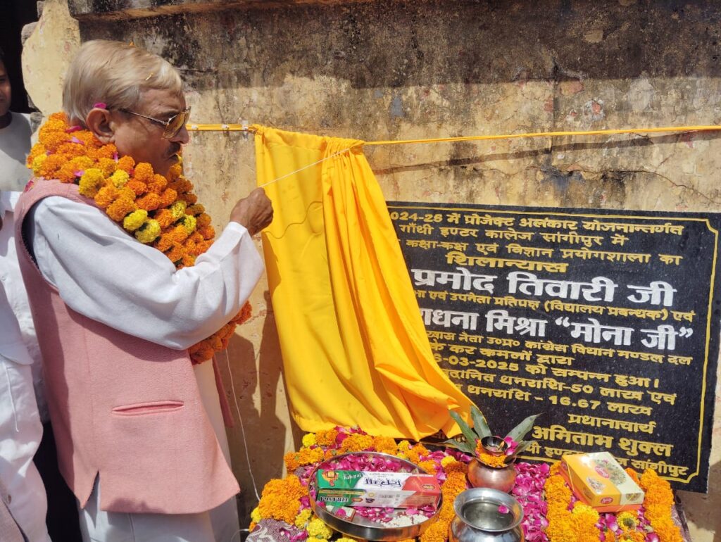 गांधी इण्टर कालेज सांगीपुर में प्रोजेक्ट अलंकार परियोजना के तहत भूमिपूजन करते राज्यसभा सदस्य प्रमोद तिवारी