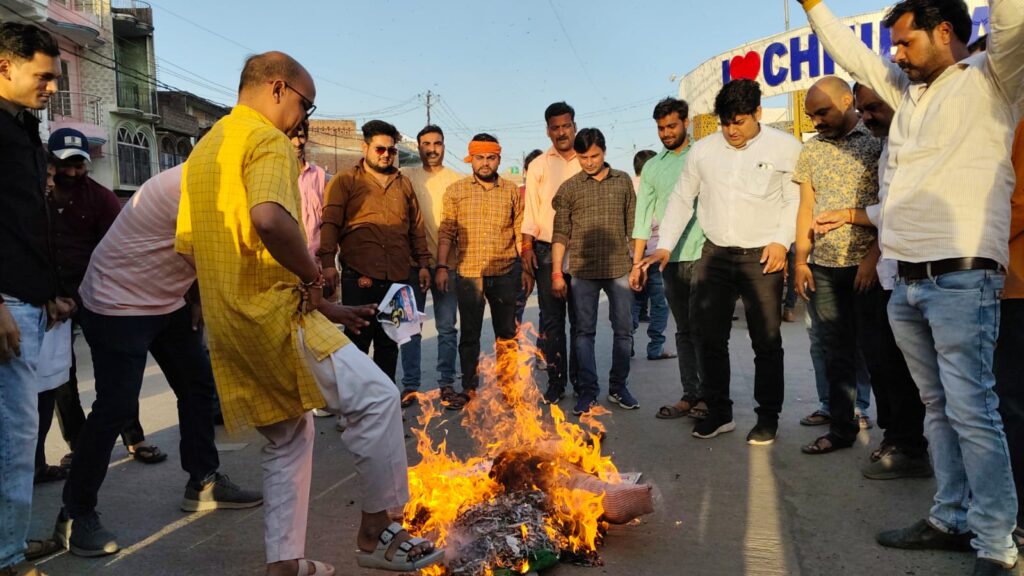 आज हिंदू संगठन ने तिरंगा चौक पर सपा नेता सांसद रामजी लाल सुमन का पुतला फूंका