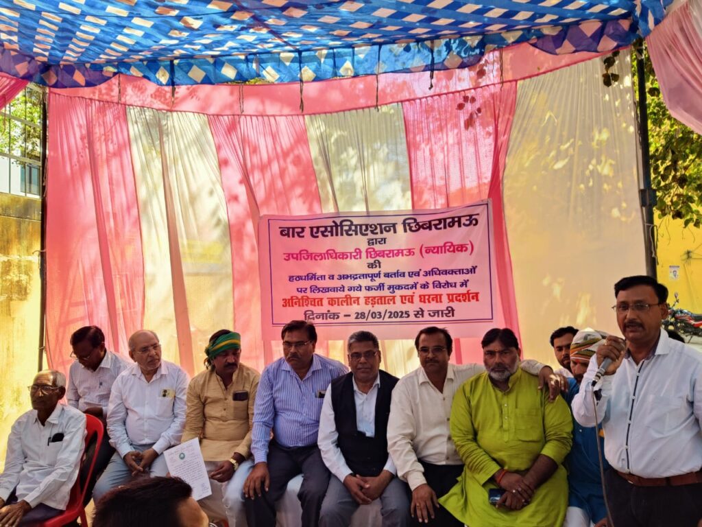 तहसील परिसर छिबरामऊ में अधिकारियों और कर्मचारियों की तानाशाही रवैया अभद्र व्यवहार अधिवक्ताओं के साथ हो रहे उत्पीडन व फर्जी मुकदमें के खिलाफ भारतीय किसान यूनियन किसान की समस्त टीम द्वारा अधिवक्ताओं को समर्थन दिया जाता है। अधिवक्ताओं के साथ हो रहे उत्पीडन को तत्काल बन्द किया जाए एवं संलिप्त अधिकारियों व कर्मचारियों पर कार्यवाही की जाए न्यायपालिका से उम्मीद है कि अधिवक्ताओं को न्याय मिलेगा। यदि छिबरामऊ तहसील के अधिकारियों व कर्मचारियों की कार्यशैली में सुधार न हुआ तो भारतीय किसान यूनियन किसान उग्र आंदोलन करने को मजबूर होगा इस दौरान प्रदेश प्रवक्ता रजनीश दुबे, जिला महासचिव राहुल प्रताप सिंह, आनंद तिवारी, गौरव राजपूत,पुनीत दुबे, आशु तिवारी,तरुण त्रिपाठी, जीतू शर्मा, दीवान सिंह,शांतनु यादव,रंजीत सिंह,हरिश्चन्द्र,अनुज कुमार, आशीष कुमार, रामशरण, खेतल सिंह,अक्षय कुमार, ब्रजेश कुमार,आदि पदाधिकारी मौजूद रहे।