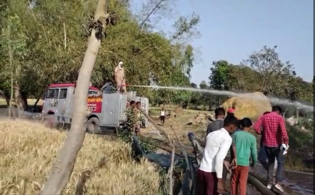 भीषण आग में ट्रैक्टर, ट्राली,समेत चार घर जलकर हुए खाक