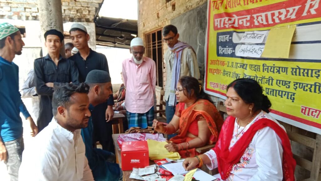 नगर पंचायत प्रतापगढ़ सिटी में उत्तर प्रदेश राज्य एड्स नियंत्रण सोसाइटी लखनऊ द्वारा गरीब नवाज सेवा संस्थान के बैनर तले सईद अहमद मास्टर की अध्यक्षता में नि शुल्क स्वास्थ्य कैंप का आयोजन किया गया जिसमें डॉ अशोक कुमार फिजिशियन शुक्ला सरोज शुक्ला एचआईवी काउंसलर अर्चना श्रीवास्तव एचआईवी काउंसलर गौरव कुमार अरुण कुमार सिंह गणेश प्रिया पांडे स्वास्थ्य टिम उपस्थिति रही आयोजक सपा नेता सद्दाम अहमद माजिद एडवोकेट ने कहा सेवा ही मेरे जीवन का लक्ष्य है शिव से बढ़कर कोई इबादत नहीं होती हर धर्म में सेवा को महत्वपूर्ण बताया गया है सेवा करने से रब खुश होता है और दिल को सुकून मिलता है स्वास्थ्य कैंप में मेहमान जफरुल हक सभासद ने कहा इंसान को अपने स्वास्थ्य का ध्यान रखना चाहिए समय-समय पर अपनी स्वास्थ्य की जांच करनी चाहिए अध्यक्षता कर रहे हैं सईद अहमद ने कहा सेवा भाव हमारे जीवन का प्रमुख लक्ष्य होना चाहिए।