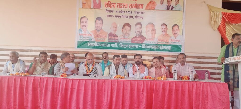 आगरा। भारतीय जनता पार्टी द्वारा स्थापना दिवस के अवसर पर खेरागढ़ विधानसभा के सक्रिय सदस्यों का सम्मेलन सोमवार को बड़े ही भव्य और गरिमामयी माहौल में सम्पन्न हुआ। कार्यक्रम में बड़ी संख्या में भाजपा कार्यकर्ता, पदाधिकारी, वरिष्ठ नेता और जनप्रतिनिधि उपस्थित रहे। यह आयोजन न केवल पार्टी की जड़ों को और मज़बूत करने का माध्यम बना, बल्कि आगामी विधानसभा व लोकसभा चुनाव को लेकर संगठन की तैयारियों का आकलन करने और कार्यकर्ताओं में ऊर्जा भरने का भी अवसर साबित हुआ।