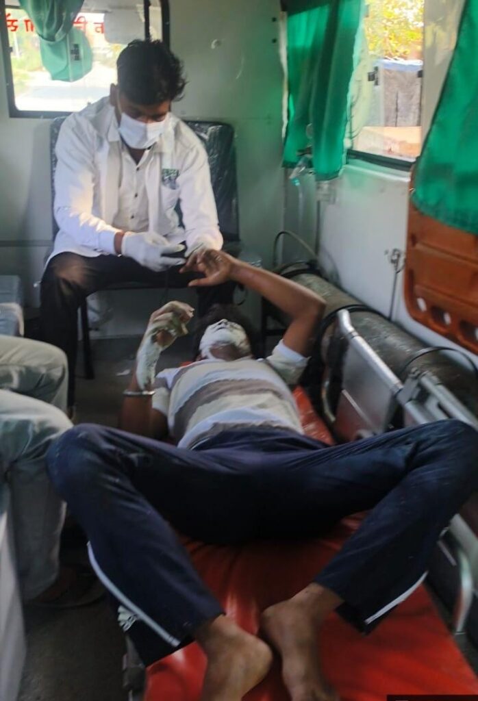 पोटाश से जल कर गंभीर रूप से घायल 108 एंबुलेंस कर्मी के द्वारा पहुंचाया अस्पताल