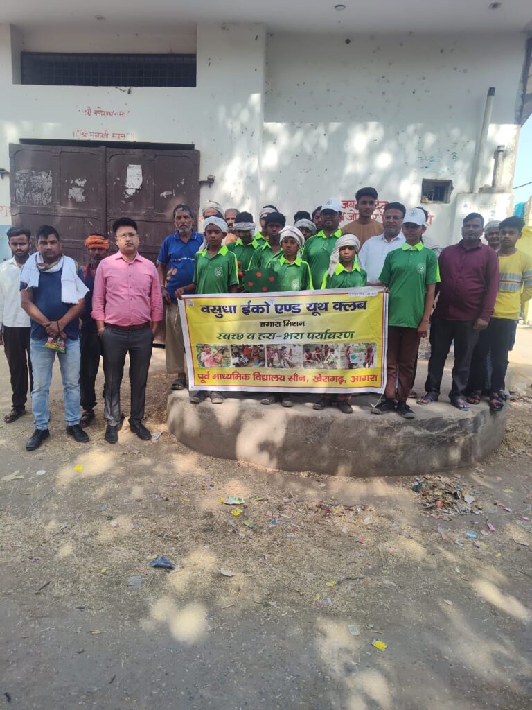 आगरा। ताजनगरी आगरा में मंगलवार को पृथ्वी दिवस के उपलक्ष में पूर्व माध्यमिक विद्यालय, सौन, खेरागढ़, आगरा के वसुधा इको एण्ड यूथ क्लब के सदस्यों (छात्र-छात्राओं) ने पृथ्वी को बचाने के लिए पौधारोपण की उपयोगिता पर एक लघु नाटक सनकी रमैया गांव की चौपाल में मंचन किया। विद्यालय प्रबंध समिति के अध्यक्ष रामदत्त जी, एआर पी सौरव शर्मा, विद्यालयी स्टाफ सहायक अध्यापिका वीनू वर्मा, नेहा राठी, नारायण सिंह एवं ग्रामवासी उपस्थित रहे। ए आर पी ने विद्यार्थियों के प्रयास को सराहा। वहां उपस्थित एक ग्राम वासी ने प्रसन्न होकर सभी विद्यालय के छात्र छात्राओं के लिए टॉफ़ी वितरण की। इंचार्ज प्रधानाध्यापक मलय कुमार दास ने सभी को पृथ्वी दिवस की शुभकामनाएं दी एवं अपने ग्राम को हरा भरा रखने का आह्वान किया।