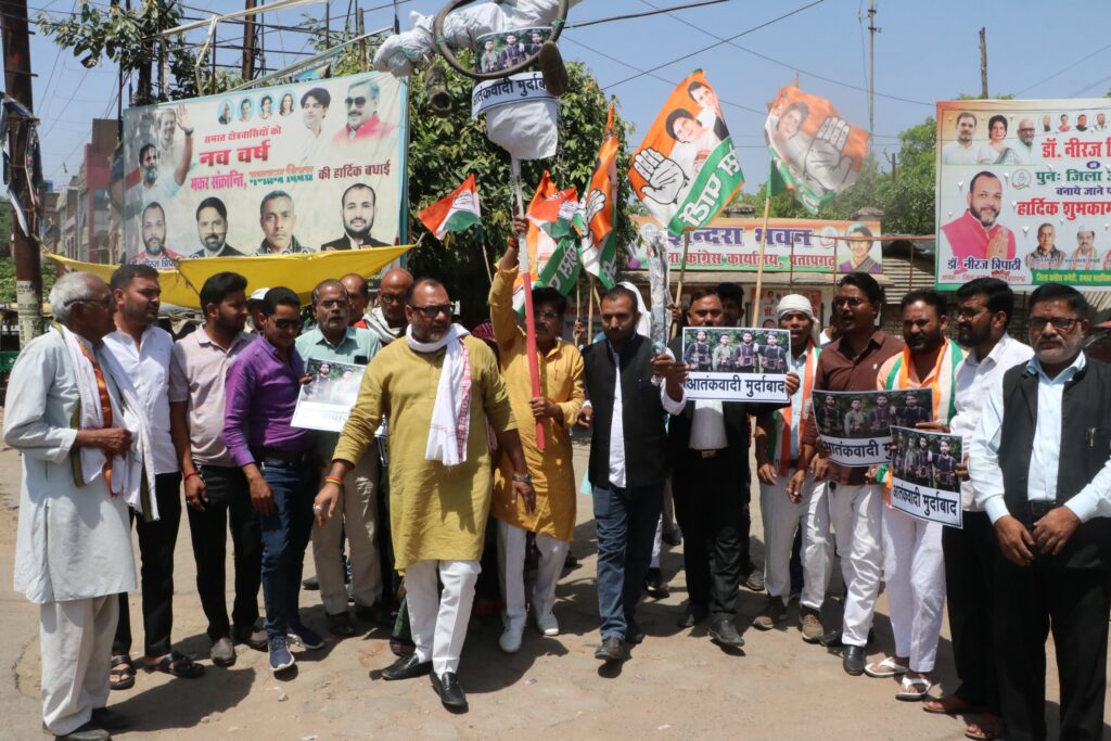 प्रतापगढ़: कांग्रेस कार्यकर्ताओं ने जिला अध्यक्ष डॉ.नीरज त्रिपाठी के नेतृत्व में अम्बेडकर चौराहे पर नारेबाजी करते हुए आतंकवाद और पाकिस्तान का पुतला बनाकर जूते की माला पहनाकर, जूतों से मारते हुए फूंका दहन किया