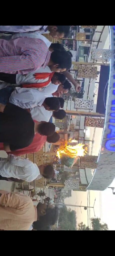 छिबरामऊ कन्नौज; पहलगाम में निर्दोष हिंदुओं की इस्लामिक आतंकियों द्वारा हत्या करने के विरोध में जनपद कन्नौज के छिबरामऊ में तिरंगा तिराहा पर विश्व हिंदू परिषद बजरंग दल के कार्यकर्ता ने एकत्रित हो कर पाकिस्तान का पुतला फूंका हिंदुस्तान जिंदाबाद पाकिस्तान मुर्दाबाद के नारे लगाए और भारत माता की जय कहते हुए 2 मिनट का मौन रखकर उनकी आत्मा की शांति के लिए भगवान से प्रार्थना की और विश्व हिंदू परिषद बजरंग दल के कार्यकर्ताओं और सनातन धर्म के लोगों ने जमकर विरोध प्रदर्शन किया कि हम भारतवासी हैं और उन्होंने कहा कि हमारी भारतीय सेना पाकिस्तान को मुंहतोड़ जवाब देगी इस मौके पर जिला संस्कृत प्रमुख विजय चौहान के निर्देशन में हुए इस कार्यक्रम में विहिप जिला अध्यक्ष संजय भदौरिया , जिला सह मंत्री दीपक दुबे , नगर अध्यक्ष अनुराग त्रिपाठी , पंकज तोमर , शैलेंद्र सिंह राठौर शैलू ,वरुण प्रताप सिंह , कृष्ण औतार गुप्ता ,टिंकू चौहान , आशीष वर्मा, अंकित जी , रमन जी ,संतोष पाण्डेय ,कुशाग्र श्रीवास्तव ,जयदीप कश्यप, सुमित कश्यप ,उत्तम गुप्ता, सहित कई कार्यकर्ता उपस्थित रहे । थाना अध्यक्ष की गाड़ी मौके पर पुलिस बल के साथ मौजूद रही
