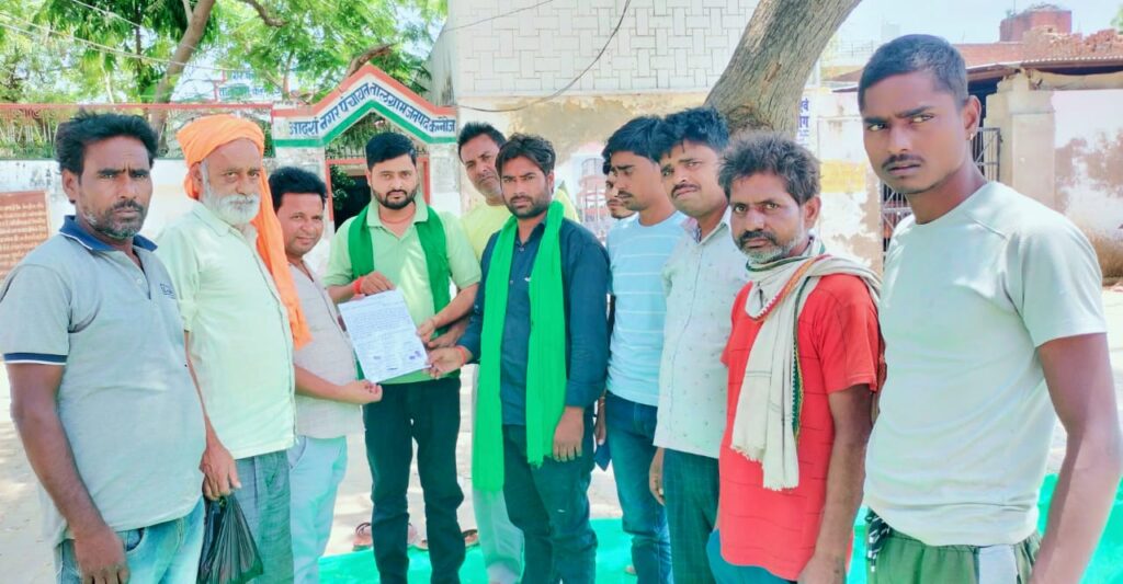 मंगलवार को नगर पंचायत तालग्राम के वार्ड नंबर 2 में विगत कई दिनों से चल रही पेयजल की समस्या की सूचना पर जिला उपाध्यक्ष प्रसून उर्फ अन्नु यादव एवं युवा मोर्चा जिलाध्यक्ष पुष्पेंद्र सिंह राठौर के नेतृत्व में दर्जनों वार्ड व नगर वासियों ने नगर पंचायत कार्यालय पहुंच धरना दिया बढ़ती भीड़ को देखकर तत्काल प्रभाव से प्रधान लिपिक दीपक सविता ने संज्ञान लिया एवं धरना दे रहे भाकियू (स्वराज) कार्यकर्ताओं व नगर वासियों के बीच पहुंचकर दो दिनों में पेयजल की समस्या के निस्तारण का आश्वासन दिया। आश्वासन मिलने के बाद मौजूद भाकियू (स्वराज) पदाधिकारियों ने उक्त लिपिक को ज्ञापन सौंपा। इस मौके पर दर्जनों भाकियू स्वराज कार्यकर्ताओं सहित नगर व वार्ड वासी मौजूद रहे।