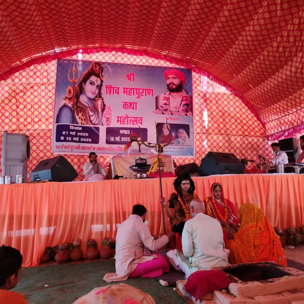 आगरा। अकोला क्षेत्र के गांव रामनगर पिनानी में आयोजित कथा शिव महापुराण के पांचवें दिन रविवार को कथा व्यास संत मनीष नाथ की अमृतमय मधुर वाणी से कहा कि मां का दर्जा भगवान से भी ऊपर होता है तथा कथा में आगे सप्त ऋषियों ने ली माता पार्वती की परीक्षा और ब्रह्मा आदि देवताओं के कहने से भगवान शिव और माता पार्वती के सुंदर विवाह का वर्णन किया। सुंदर झांकी का दर्शन करके सभी श्रोता मंत्र मुग्ध हो गए,आदि कथाओं का वर्णन किया गया। केदार पहलवान द्वारा व्यास जी का नोटों की माला व चांदी का मुकुट पहना कर स्वागत किया।