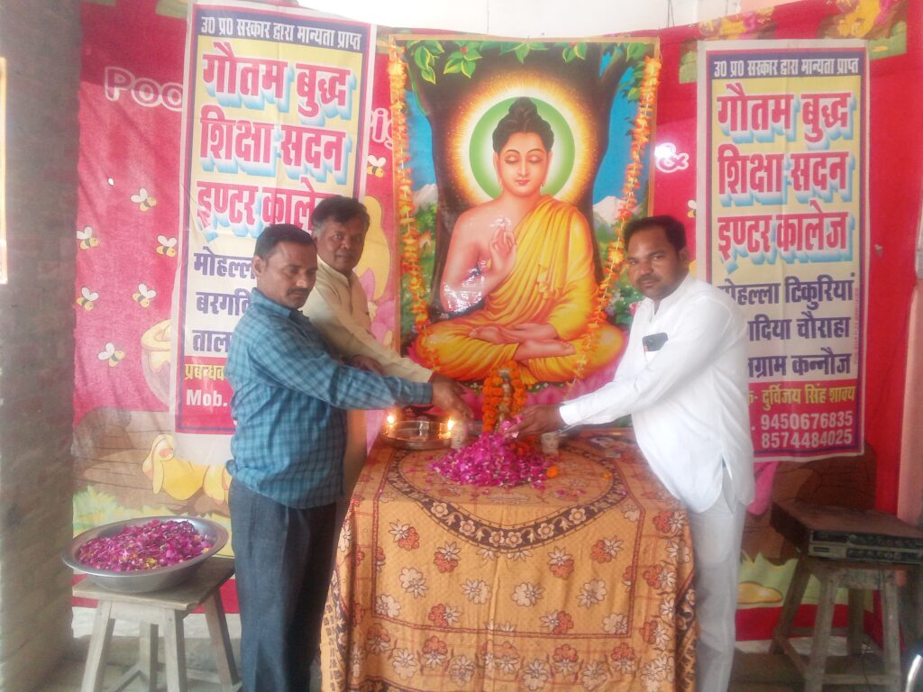 तालग्राम कन्नौज। में त्रिविधि पावनी बुद्ध पूर्णिमा के अवसर पर विश्व गुरु भगवान गौतम बुद्ध की जयंती बड़े धूमधाम से मनाई गई । विद्यालय के प्रबन्धक श्री दुर्विजय सिंह शाक्य ने भगवान गौतम बुद्ध के चित्र पर पुष्प अर्पित करके ज्ञान का प्रतीक दीप प्रज्ज्वलित करके विश्व गुरु भगवान गौतम बुद्ध की शिक्षाओं पर प्रकाश डाला।। आज के इस बुद्ध जयंती कार्यक्रम में नगर व क्षेत्रीय धम्म प्रेमियों ने काफी संख्या में आकर अपनी उपस्थिति दर्ज कराई। और भगवान गौतम बुद्ध के बताए हुए सम्यक मार्ग पर चलने की प्रतिज्ञा की। पूर्वअध्यक्ष राम अवतार ने बच्चों को प्रेरणा दी कि भगवान बुद्ध के बताए हुए नियमों का पालन करें समाज में सामाजिक कार्य करें और साथ ही साथ अभिभावकों को बताया कि वह अपने बच्चों को शिक्षा दिलाई जब हमारे बच्चे शिक्षित होंगे तभी हमारे देश का उज्जवल हो सकता है अगर हमने धन खूब पैदा कर लिया लेकिन अगर हमारे बच्चे शिक्षित नहीं है तो वह धन-धन का सही से प्रयोग ना करके दुरुपयोग करेंगे और उनका भविष्य उज्जवल नहीं हो सकता सबसे पहले हमें अपने बच्चों को अच्छे शिक्षा दिलाने का काम करें क्यों बिना शिक्षा के हम अच्छा व्यापार भी नहीं कर सकते अच्छी नौकरियां नहीं पा सकते सबसे पहले हमें अपने बच्चों को शिक्षा दिन अच्छी शिक्षा का प्रबंध करें और वही दुर्विजय सिंह ने कहा कि बहुत जी हमारे पूजनीय है और उनके बताए हुए नियमों का हमें पालन करना चाहिए और जो भी हमारे महापुरुष है उन सभी के बताएं नियमों का पालन करना चाहिए और जब तक हमारे बच्चे शिक्षित नहीं होंगे तब तक हम आगे नहीं बढ़ सकते सबसे जरूरी है शिक्षा शिक्षा के बल पर अगर हमारा बच्चा अच्छी शिक्षा को प्राप्त कर लेता है तो वह किस हद तक ऊपर जा सकता है इसका कुछ कहा नहीं जा सकता इसलिए शिक्षा मेरे बच्चों के भविष्य के लिए अति आवश्यक हैं और शिक्षा से हम हम आगे बढ़ सकते हैं बिना शिक्षा के हम अच्छा व्यापार नहीं कर सकते हमें सबसे जरूरी है कि समाज को शिक्षित बनाना यह हम सभी का कर्तव्य है बौद्ध जी की जयंती पर पूर्व नगर अध्यक्ष रामावतार अनिल कनौजिया विक्रम सिंह संजय सिंह राजीव सिंह दिनेश सिंह राजेश्वर मुकेश कुमार नरेंद्र कुमार राजेश शर्मा इंद्रेश अक्षय कुमार प्रजापति विश्व हिंदू परिषद नगर अध्यक्ष डॉक्टर अकील अहमद पूर्व सभासद श्यामा देवी आदि सैकड़ो की संख्या में लोग उपस्थित रहे