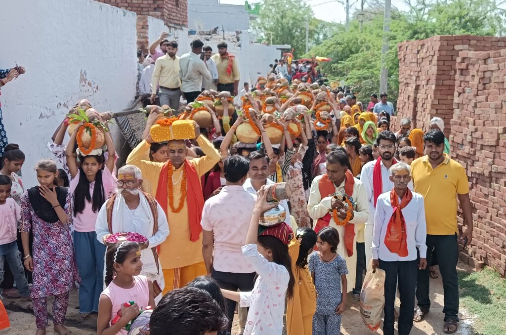 कथा के प्रारंभ से पूर्व गांव की सैकड़ों महिलाओं और बालिकाओं ने पारंपरिक परिधानों में कलश यात्रा निकाली। वैदिक मंत्रोच्चारण, ढोल-नगाड़ों और भजनों की धुनों के बीच जब कलश यात्रा गांव की गलियों से गुजरते हुए कथा स्थल पर पहुंची, तो पूरा वातावरण भक्तिरस से सराबोर हो उठा। श्रद्धालुओं की आंखों में आस्था और मन में श्रीकृष्ण भक्ति की गहराई स्पष्ट झलक रही थी।