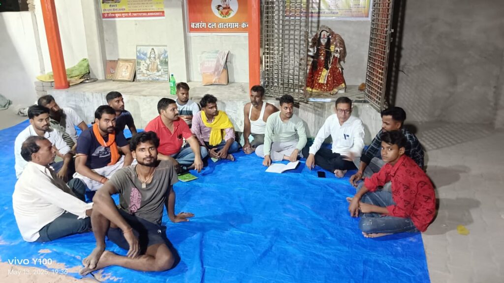 विश्व हिंदू परिषद एवं बजरंग दल की आवासीय बैठक हनुमान मंदिर बड़ा बाजार तालग्राम में आयोजित की गई