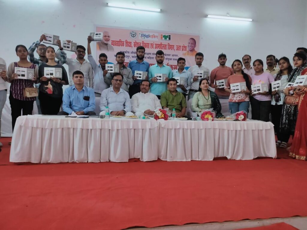 आगरा। नोडल प्रधानाचार्य, राजकीय औद्योगिक प्रशिक्षण संस्थान मान सिंह भारती ने अवगत कराया है कि स्वामी विवेकानन्द युवा सशक्तिकरण योजना अन्तर्गत जनपद में राजकीय औद्योगिक प्रशिक्षण संस्थान, बल्केश्वर, आगरा में विधायक पुरुषोत्तम खण्डेलवाल, आगरा मुख्य अतिथि एवं श्रीमती पूजा बंसल, पार्षद नगर निगम, आगरा विशिष्ट अतिथि की गरिमामयी उपस्थिति में राजकीय आईटीआई,आगरा, महिला आगरा, एत्मादपुर, वाह एवं फतेहाबाद के प्रशिक्षार्थियों को टेबलेट वितरण का कार्यक्रम सम्पन्न हुआ। जिसमें जनपद आगरा के समस्त राजकीय संस्थानों के कुल 1030 प्रशिक्षार्थियों को टेबलेट वितरित किये गये।