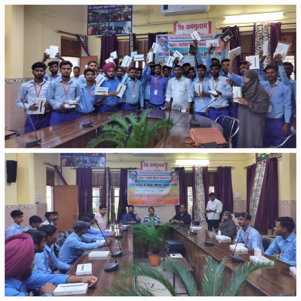 महमूदाबाद, सीतापुर-स्मार्टफोन एवं टैबलेट वितरण कार्यक्रम: सेठ रामगुलाम मुनेश्वर प्रसाद प्राइवेट आईटीआई, महमूदाबाद में हुआ आयोजन