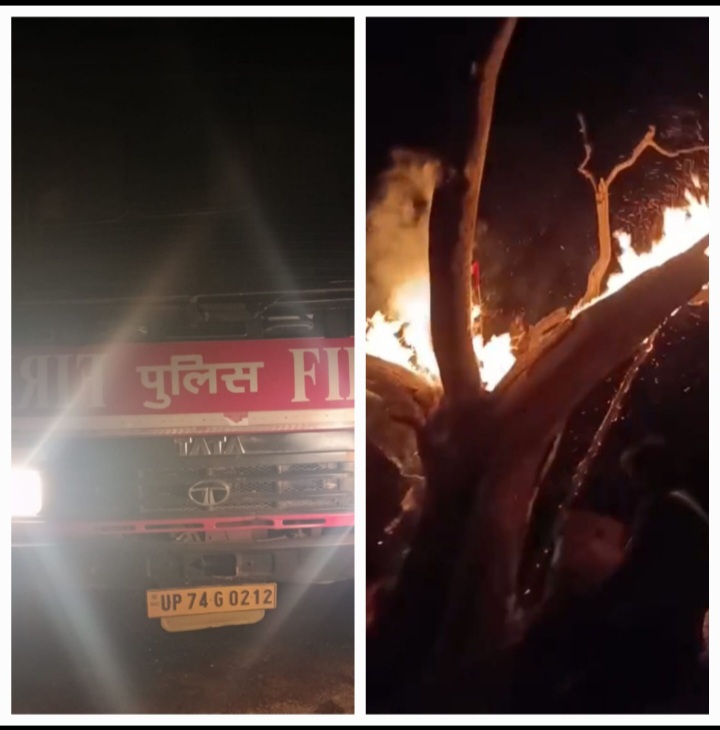 उत्तर प्रदेश, छिबरामऊ विशुनगढ़ रोड स्थित सागर बाले ब्रह्मदेव मंदिर में लगी आग।