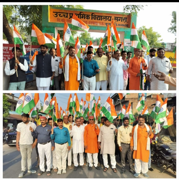 लक्ष्मणपुर/प्रतापगढ़। स्थानीय बाजार में भारतीय सैनिकों द्वारा ऑपरेशन सिंदूर की सफलता का जश्न मनाने के लिए भारतीय जनता पार्टी के मंडल अध्यक्ष प्रमोद सिंह व भारतीय किसान मोर्चा के मंडल अध्यक्ष संजय शुक्ल के संयोजन में तिरंगा यात्रा निकाली गई । जिसकी शुरुआत राष्ट्रभक्ति के जयकारों से हुई उसके डी जे पर बजते देश भक्ति के गीतों पर उद्घोष के साथ तिरंगा यात्रा बाजार के विभिन्न स्थलों से गुजरती हुई पुनः पुरानी बाजार पहुंची इस अवसर पर भारतीय जनता पार्टी वरिष्ठ नेता एवं ब्लाक प्रमुख डॉ राकेश सिंह ने कहा कि ऑपरेशन सिंदूर की सफलता सैनिकों के मनोबल को बढ़ाने के साथ-साथ ही एक इतिहास लिखने का काम किया है भारतीय सैनिकों ने जिस तरह से बिना आम नागरिकों को बिना नुकसान पहुंचाये हुए आतंकवादियों को समूह नष्ट किया है वह हम सैनिकों हम लोगों के लिए गर्व की बात है और हमारा पड़ोसी देश से आतंकवादी पलायन कर रहे हैं उन्होंने इस तिरंगा यात्रा की तारीफ करते ही राष्ट्रध्वज को सर्वोपरि बताया तथा ऑपरेशन सिंदूर को सेना का गौरव गाथा बताया। शासकीय अधिवक्ता प्रशांत त्रिपाठी ने भी सेना के सैनिकों की तारीफ करते हुए ऑपरेशन सिंदूर को ऐतिहासिक बताया। इस अवसर पर भाजपा मंडल के पूर्व अध्यक्ष के जय भगवान पाण्डे ,संतोष शुक्ला साहब, मंडन मिश्रा, श्याम शंकर पांडे, मुरलीधर उपाध्याय, समाज सेवी अभय सिंह मुन्ना, अरुण सिंह बढ़ानी, रवि पांडे, राजेश शुक्ल अनूप त्रिपाठी, सहित भाजपाई मौजूद रहे।