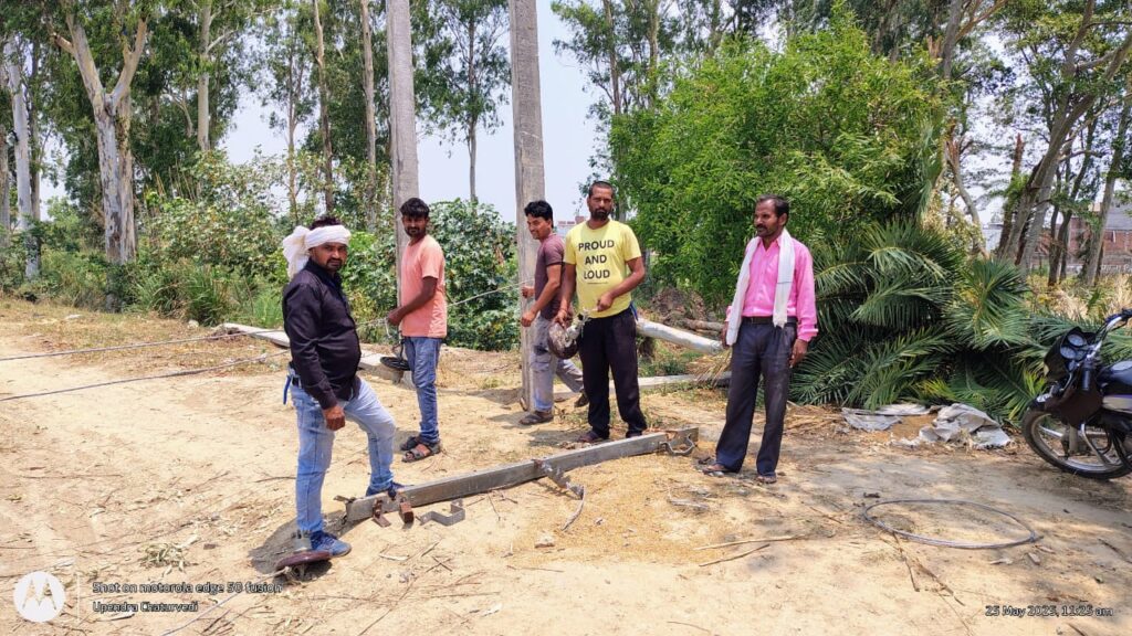 उत्तर प्रदेश कन्नौज, आई आंधी तूफान से टूटे पोलों को लगाते विद्युत कर्मी