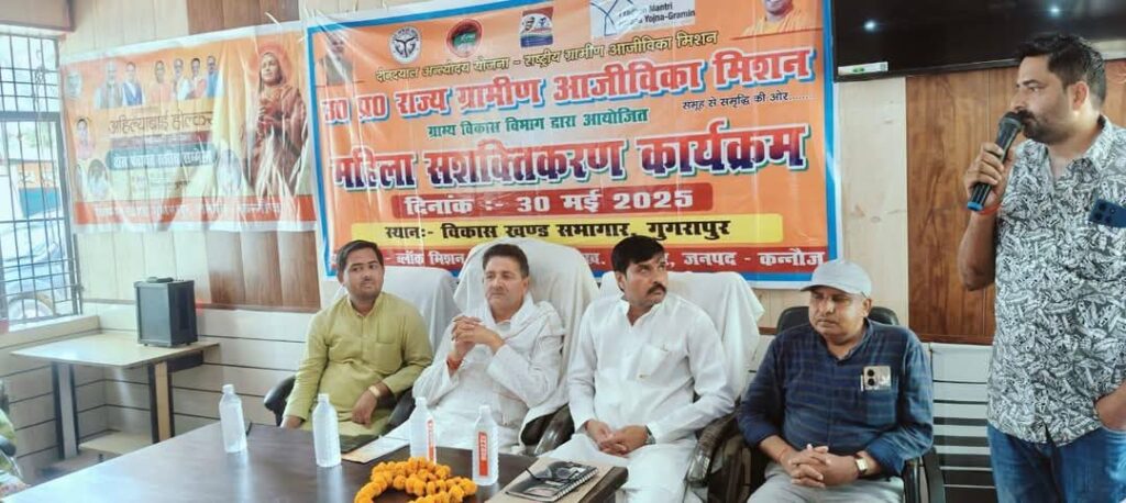 कन्नौज।जिले के ब्लॉक गुगरापुर के ब्लॉक सभागार में भाजपा जिला अध्यक्ष वीर सिंह भदौरिया की अध्यक्षता में अहिल्याबाई होल्कर जी के त्रिशताब्दी वर्ष के अंतर्गत आयोजित महिला सशक्तिकरण कार्यक्रम का आयोजन किया गया।जिसमें भाजपा नेता दिलीप पांडे ने अहिल्याबाई होल्कर के जीवन पर प्रकाश डाला और उनके शासन काल ,न्यायप्रियता,महिला सशक्तिकरण जो कार्य किया है।वो बहुत ही प्रेरणादायक है। उनके विचारों को हम लोग जन जन तक पहुंचने कार्य कर कर रहे है।कार्यक्रम का शुभारंभ भाजपा जिला अध्यक्ष ने दीप प्रज्वलित कर किया ।इस मौके पर काफी संख्या में जनसमुदाय हिस्सा लिया।इस दौरान गुगरापुर ब्लॉक के ब्लॉक प्रमुख संदीप चतुर्वेदी,राम सिंह यादव बीडीओ,राजेंद्र सिंह एडीओ,कुलदीप दोहरे जिला मंत्री,सुरेंद्र सिंह पूर्व मंडल अध्यक्ष जलालाबाद,चंद्रपाल पाल प्रधान गुसाईदासपुर, आदि लोग उपस्थित रहे।
