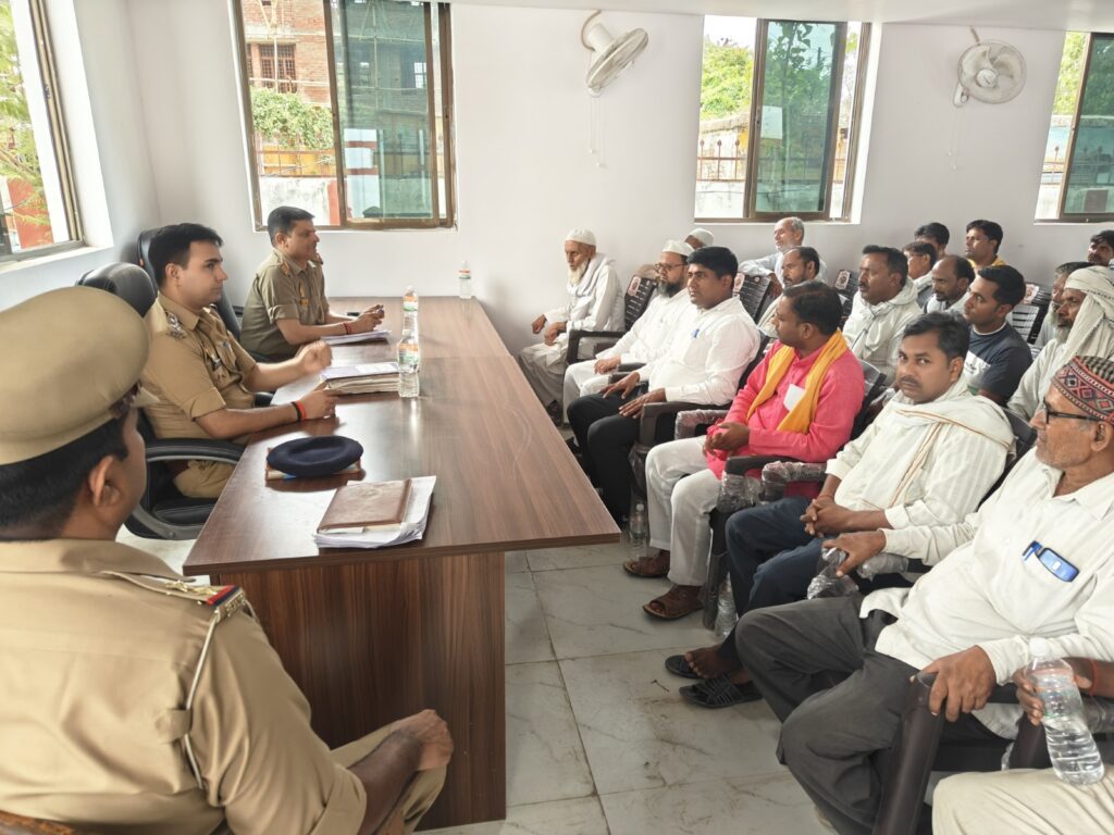 पुलिस अधीक्षक प्रतापगढ़ डॉ0 अनिल कुमार के निर्देशन आगामी बकरीद पर्व के दृष्टिगत शांति, कानून व्यवस्था एवं सामाजिक सौहार्द बनाए रखने के दृष्टिगत आज दिनांक 02.06.2025 को थाना रानीगंज में सीओ रानीगंज श्री विनय प्रभाकर साहनी एवं थाना रानीगंज प्रभारी निरीक्षक श्री अर्जून सिंह की अध्यक्षता में पीस कमेटी की एक महत्वपूर्ण बैठक आयोजित की गई ।* इस बैठक में नगर के गणमान्य नागरिकों, धर्मगुरुओं, व्यापार मंडल के प्रतिनिधियों, पत्रकारों एवं अन्य समाजसेवियों ने भाग लिया । बैठक का मुख्य उद्देश्य आगामी त्योहार के अवसर पर क्षेत्र में शांति व्यवस्था बनाए रखना, साम्प्रदायिक सौहार्द को प्रोत्साहित करना एवं किसी भी प्रकार की अफवाहों या गलतफहमियों से बचाव सुनिश्चित करना रहा ।- त्योहार के अवसर पर साफ-सफाई एवं बिजली-पानी की व्यवस्था को दुरुस्त रखने हेतु नगर पालिका एवं संबंधित को आवश्यक निर्देश दिए गए।- कुर्बानी के समय नियमों का पालन करने तथा सार्वजनिक स्थानों पर कोई भी गतिविधि न करने की अपील की गई।- सोशल मीडिया पर अफवाहों एवं भ्रामक सूचनाओं से सावधान रहने एवं पुलिस प्रशासन को तुरंत सूचित करने की सलाह दी गई।