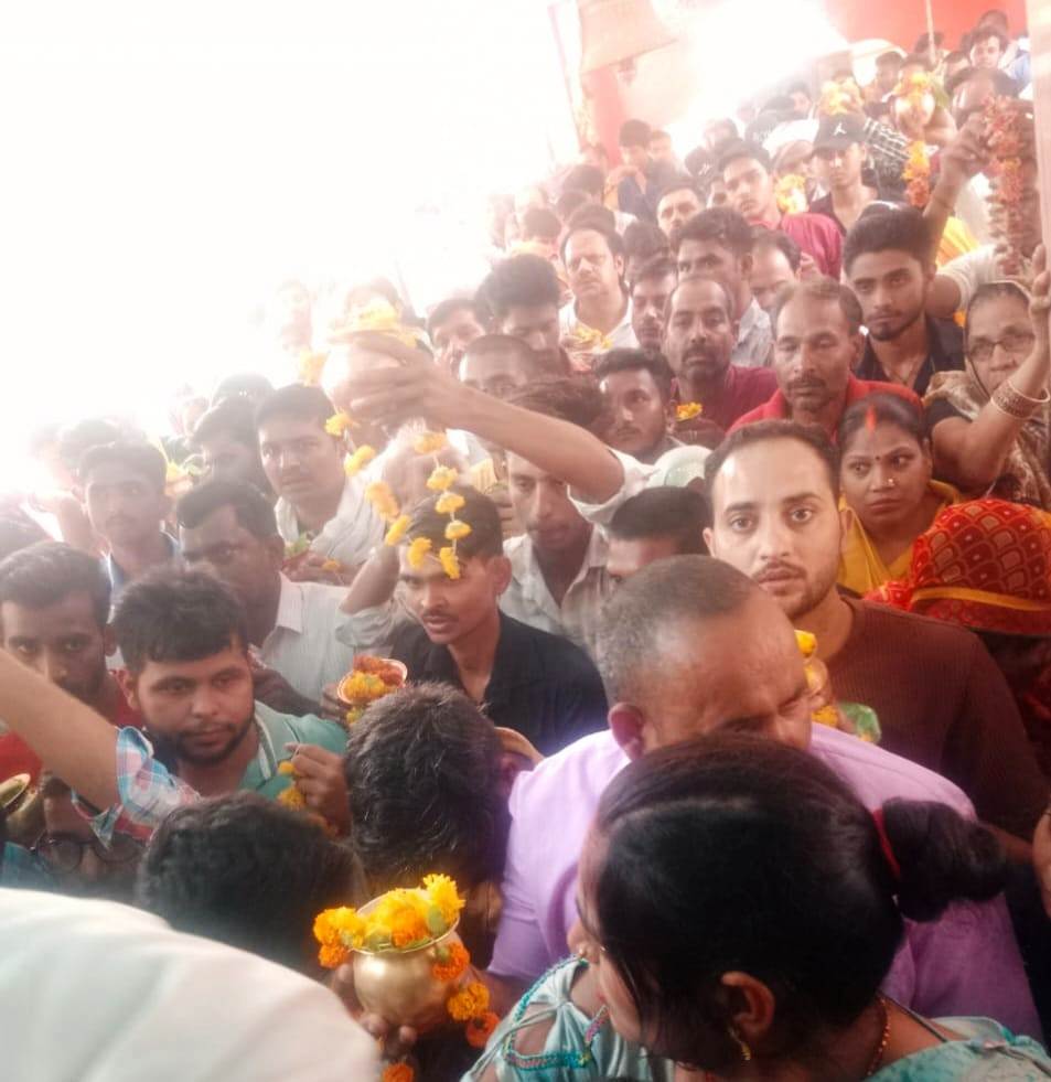 बाबा घुइसरनाथ धाम में जलाभिषेक के लिए श्रद्धालुओं की जुटी भीड़