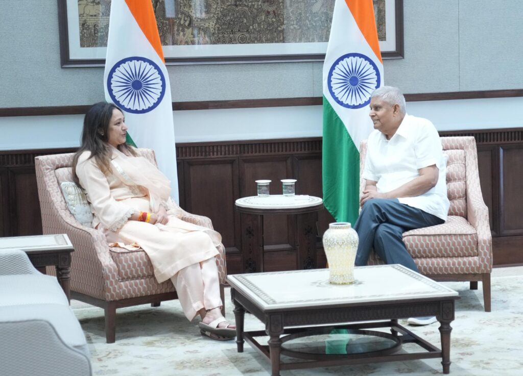 नई दिल्ली के उप राष्ट्रपति भवन में उप राष्ट्रपति जगदीप धनखड़ से शिष्टाचार मुलाकात करती विधायक आराधना मिश्रा मोना