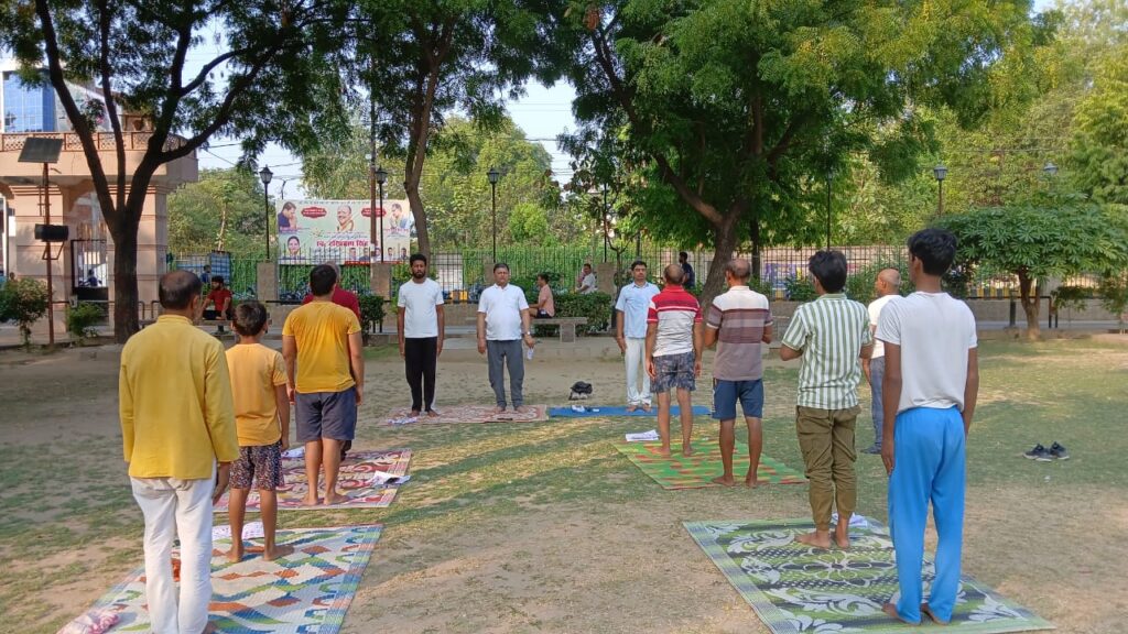 दीपक जी युवा भारत संरक्षक के मार्गदर्शन और यजुवेन्द्र जी व प्रवीण जी योग प्रशिक्षक के कुशल दिशा निर्देश व प्रशिक्षण में योग साधक शहीद उद्यान में उपस्थित रहकर योग की विभिन्न मुद्राओं का प्रोटोकाल की दृष्टि से अभ्यास कर रहे हैं आज योग शिविर में धीरज जी -संगठन मंत्री अंजनी जी सह कार्यालय प्रभारी राजकुमार जी योग साधक सात्विक जी योग साधक अमित शुक्ल प्रदीप शिवम संकल्प उत्तम शिवकांत राजेश आदि की योगासन एवं प्राणायाम अभ्यास शिविर में उपस्थिति रही