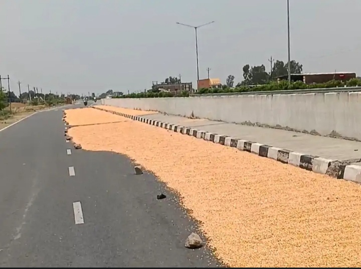 कन्नौज , हाईवे ही बना मक्का सुखाने का मैदान,अफसर अभी तक अनजान बने हुए हैं।
