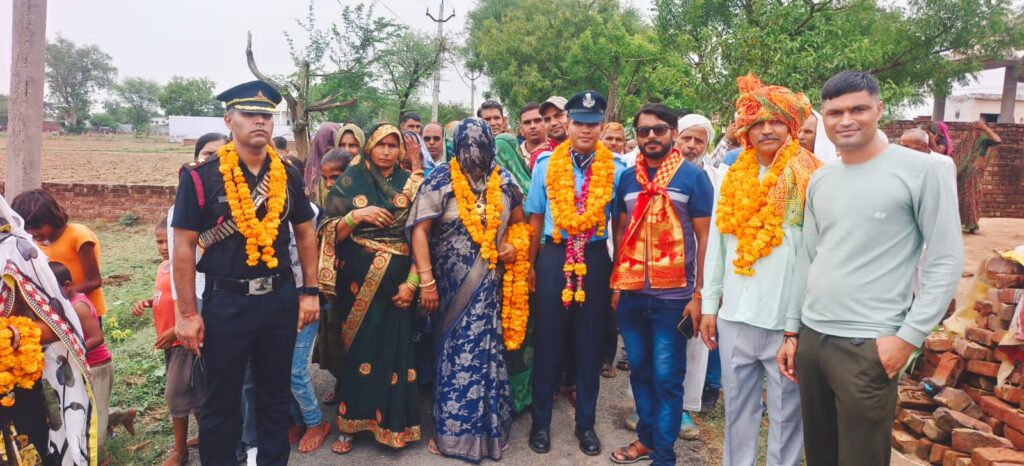एफकैट देहरादून से पास आउट कर 14 जून को वायु सेना में नरविजय सिंह फ्लाइंग ऑफिसर चयनित हुए। फ्लाइंग ऑफिसर के छोटे भाई सूरज सिंह आर्मी में लेफ्टिनेंट है वही पिता सौदान सिंह किसान है।किसान के घर में दोनों बेटों के ऑफिसर बनने से गांव क्षेत्र में खुशी का माहौल है। सोमवार को गांव पहुंचने पर उनका बैंड बाजों के साथ साफा माला पहनकर जोरदार स्वागत किया गया। स्वागत के दौरान प्रमुख रूप से संतोष प्रधान,सुरेंद्र प्रधान,गीतम चाहर ,सुभाष प्रधान ,अरविंद चाहर जिला पंचायत सदस्य ,गंभीर चाहर प्रधान ,भाजपा नेता प्रमोद चाहर ,जिला पंचायत सदस्य चेतन ,सचिव हरवीर सिंह ,भोलाठे केदार ,विवेक चाहर , छिदी चाहर , देवी सिंह ,राकेश गंगा प्रसाद ,पवन ,मधुवन चाहर ,बनवारीलाल , राम शरण चाहर ,प्रेम भगत , चतुर्साल नेता जी समेत बड़ी संख्या में ग्रामीण मौजूद रहे ।