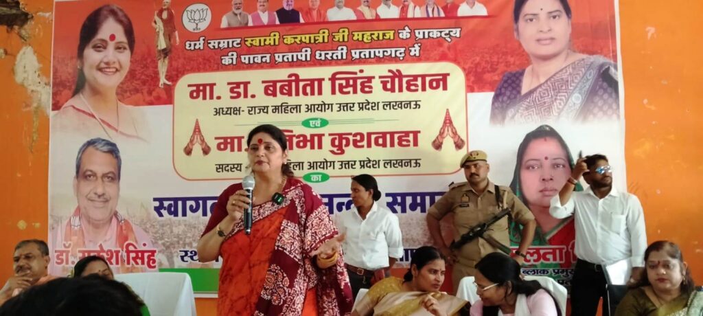ब्लाक सभागार लक्ष्मणपुर में समारोह को संबोधित करती महिला आयोग की अध्यक्ष बबिता सिंह