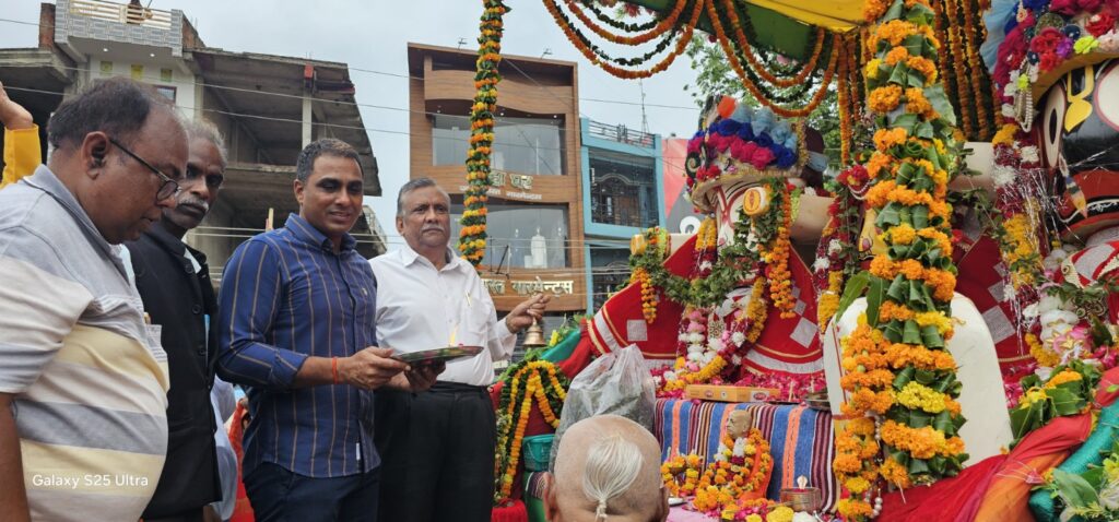 प्रतापगढ़ , श्री जगन्नाथ यात्रा के अवसर पर पुलिस अधीक्षक . डॉ0 अनिल कुमार द्वारा भगवान श्री जगन्नाथ की विधिवत पूजा-अर्चना की गई। इस दौरान आयोजन समिति द्वारा पुलिस अधीक्षक प्रतापगढ़ डॉ. अनिल कुमार को भगवान श्री जगन्नाथ की प्रतिमा भेंट कर सम्मानित किया गया।”