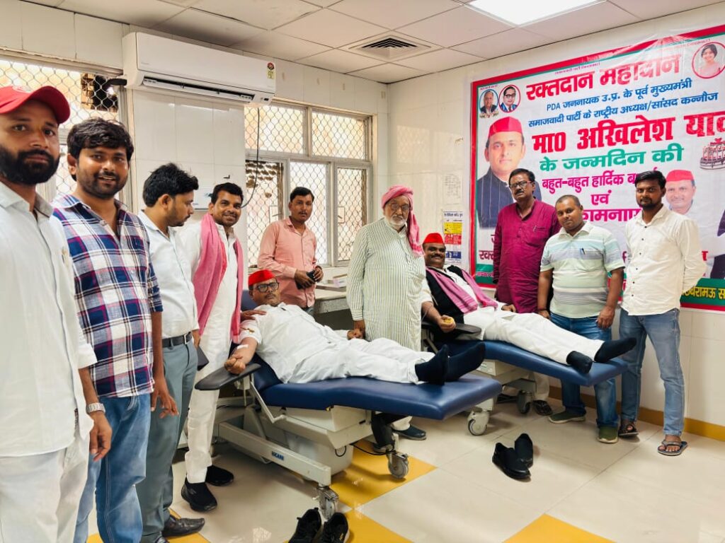 कन्नौज , पूर्व मुख्यमंत्री अखिलेश यादव के जन्मदिवस पर सपा कार्यकर्ताओं ने किया रक्तदान।