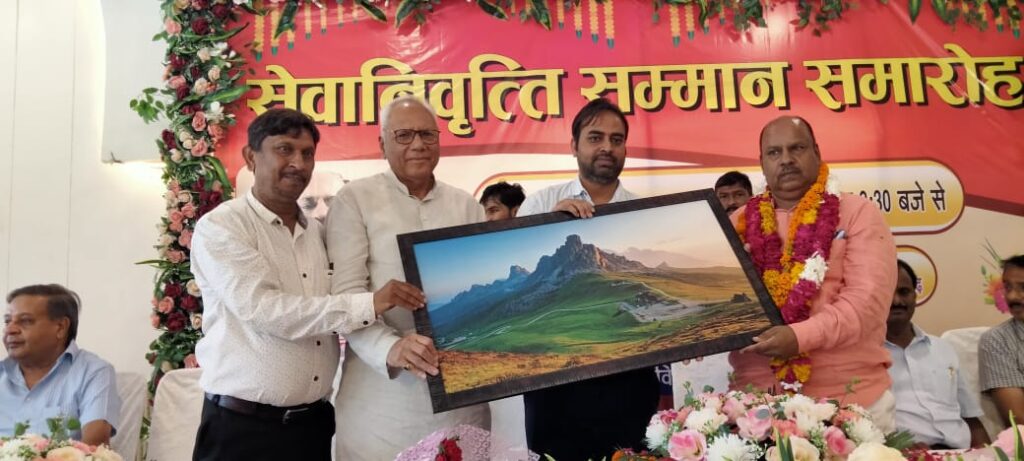 कार्यक्रम में सेवानिवृत्त अवर अभियंता को सम्मानित करते अतिथिगण