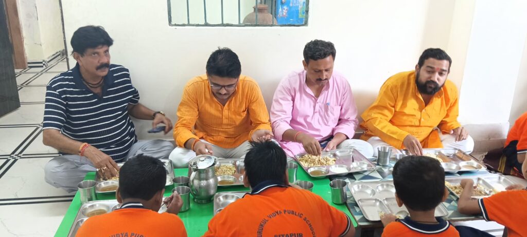 उन्होंने गुरुकुल की परंपरा के अनुसार भोजन मंत्र के साथ सादगीपूर्ण प्रसाद ग्रहण किया और विद्यालय की अनुशासित शिक्षण पद्धति एवं सांस्कृतिक वातावरण की मुक्तकंठ से प्रशंसा की।