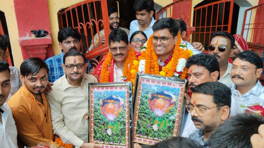 प्रतापगढ़ , सौम्य शर्मा के आईएएस में चयन होने पर प्रथम आगमन पर हनुमान मंदिर चिलबिला पर हुआ भव्य स्वागत