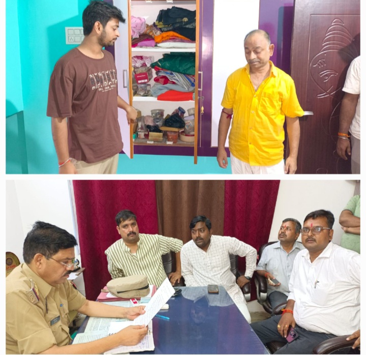 कछौना(हरदोई): कस्बा कछौना के कपड़ा व्यवसाय राजेश वस्त्रालय के यहां दो बदमाशों ने पहले से घर में घुसकर परिवार वालों के सो जाने के बाद शनिवार की रात चोरी की घटना को अंजाम दिया जिसमें प्लाट खरीदने के लिए रखे 15 लख रुपए नगद व ₹4 लाख के जेवरों की चोरी की घटना को अंजाम दिया। 6 माह के अंदर कस्बे में तीसरी चोरी की घटना से व्यापारियों में काफी असुरक्षा की भावना पैदा हो गई है। कस्बा कछौना के स्टेशन मार्ग पर मोहल्ला इमलीपुर में कपड़ा व्यवसायी राजेश गुप्ता का घर स्थित है। शनिवार की रात परिजनों के अनुसार परिजन घर का दरवाजा बंद करके खाना खाकर सो गए। समय लगभग 10:30 बजे छोटा लड़का प्रखर गुप्ता पेशाब करने के लिए उठा तो एक बदमाश ने प्रखर को पकड़कर गला दबाकर मारने की कोशिश की, बाद में जीने से छत छठ के ऊपर से भाग गए। इस घटना के दौरान बदमाशों ने घर में दूसरी मंजिल से कमरों की अलमारी तोड़कर नगदी 15 लाख रुपए व जेवर सोने के कान के बाली, कान के झाले, 4 अंगूठी, एक चैन कीमत लगभग चार लाख रुपए की चोरी की घटना को अंजाम दिया। इस घटना से व्यापारियों में असुरक्षा की भावना पैदा हो गई। 6 माह के अंदर तीसरी बड़ी चोरी की घटना से कस्बे के व्यापारियों में काफी आक्रोश है। परिजनों ने पूरे मामले की सूचना कोतवाली कछौना को दी। व्यापार मंडल अध्यक्ष रवि गुप्ता ने पुलिस से शीघ्र चोरी की घटना का खुलासा करने की मांग की, शीघ्र खुलासा न होने पर व्यापार मंडल धरना प्रदर्शन करने को बाध्य होगा।