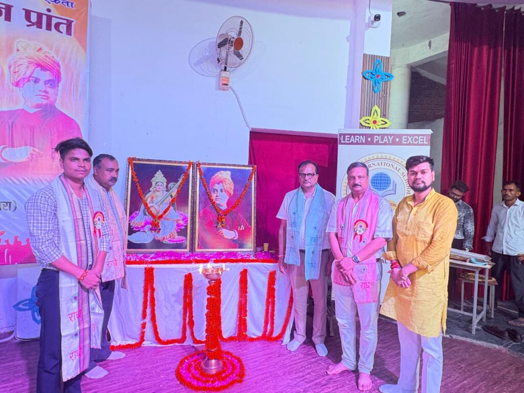 कार्यक्रम का शुभारंभ मुख्य अतिथि क्षेत्रीय मंत्री राहुल चौधरी,मुख्य वक्ता डॉ अमित अग्रवाल,कार्यक्रम अध्यक्ष संजय अग्रवाल,जिला प्रमुख डॉ ब्रजेश चतुर्वेदी, विभाग संयोजक मोहित सिकरवार ने माँ सरस्वती व युवाओं के प्रेरणास्रोत स्वामी विवेकानंद जी के चित्र के समीप दीप प्रज्वलन कर किया गया।