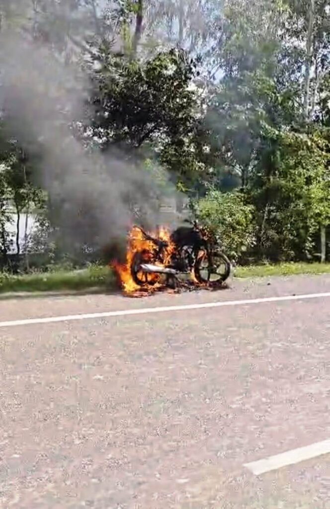 लालगंज, प्रतापगढ़ , हाइवे पर आग का गोला बनी बाइक, जलकर राख नेशनल हाइवे पर आगजनी में क्षतिग्रस्त हुई बाइक