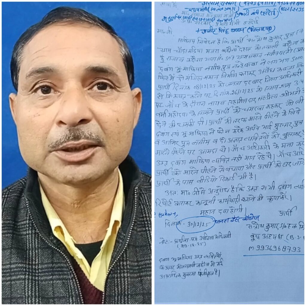 बताते चलें कि भाजपा के कछौना मंडल के बूथ अध्यक्ष व ग्राम पंचायत कछौना देहात निवासी संतोष कुमार अपनी ग्राम पंचायत में प्रधान-पति मोहम्मद नसीम द्वारा गाटा संख्या-507(सार्वजनिक भूमि) पर अवैध कब्जा कर दो मंजिला मकान बनाने की शिकायत डीएम से की थी जिसकी जांच के लिए बीते 26 दिसंबर को संडीला में तैनात नायाब तहसीलदार अनुपमा वर्मा मौके पर पहुंची थी। जांच के दौरान ही दोनों पक्षों में अधिकारी के सामने वाद-विवाद बढ़ा और संतोष के कथनानुसार मोहम्मद नसीम ने उन्हें गाली-गलौज करते हुए जान-माल/गोली मारने की धमकी दी जिसका उनके पास वीडियो भी है। उसके बाद 30 दिसंबर को कछौना के जनता इंटर कॉलेज में आयोजित ‘अटल स्मृति सम्मेलन’ में बतौर मुख्य अतिथि शामिल होने आए हरदोई के प्रभारी मंत्री असीम अरूण को संतोष ने इस प्रकरण पर कार्रवाई हेतु पत्र देकर पूरे मामले से अवगत कराया।